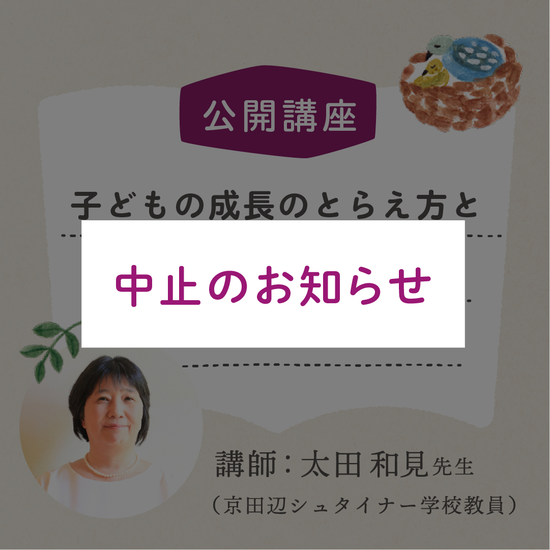 【公開講座中止のお知らせ】 12月7日(日)に開催予定の【公開講座】シュタイナー教育基礎講座「子どもの成長のとらえ方とシュタイナー学校のカリキュラム」は、講師の…